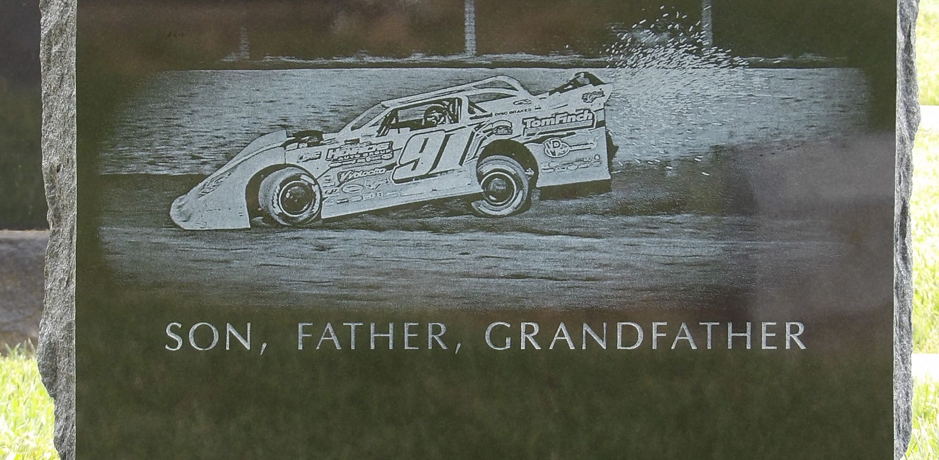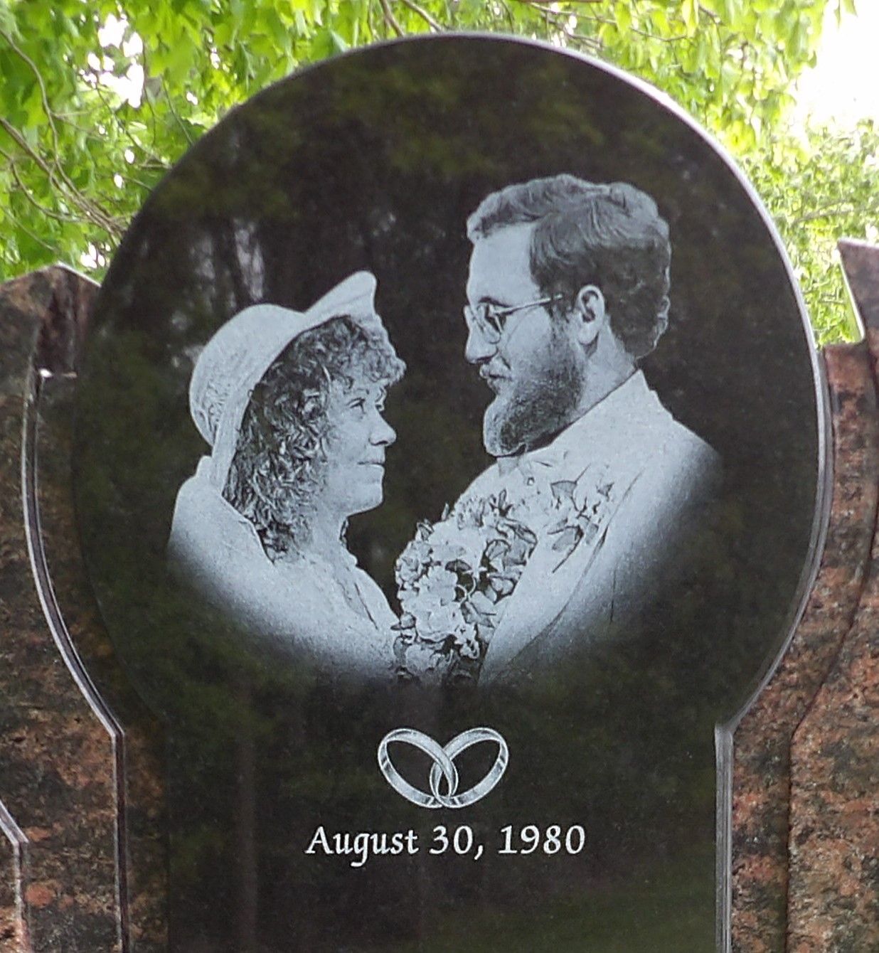 Etching uses a laser to burn pixels onto the polished memorial. This process allows them to transform your photograph, onto the granite, and it will last for generations! The etching on our memorials are done by the best etchers in the industry with more than 25 years of experience. We transport the memorials to and from our etcher’s facility in Southern Indiana. You can create an etching of anything and everything, from photographs of your loved ones to full scenes created from a photo of the family farm. Etchings are best on black granite. Check out these photographs!